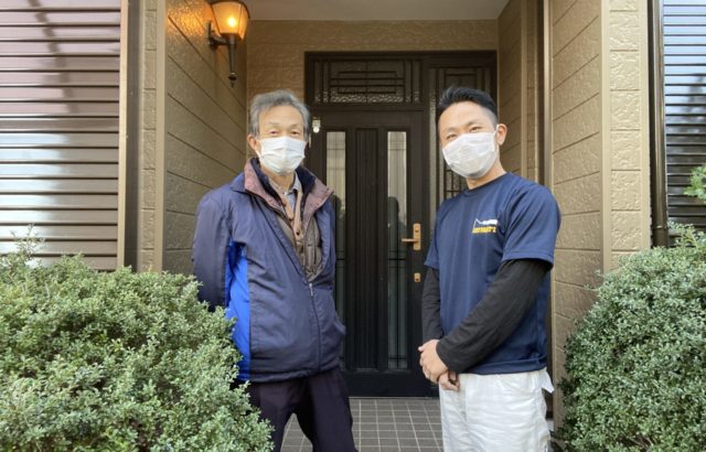 | 使用材料 | 【外壁】下塗:エポパワーシーラー 上塗:シリコンREVO1000-IR クールホワイト 9010 3分艶 【軒天】上塗:マルチエース Ⅱ-JY クールホワイト 9010 艶消 【付帯部】上塗:マックスシールド1500Si-JY 【雨樋・破風・水切り・雨戸】ヤララブラウン 8077 3分艶 【基礎巾木】上塗:ビーズコート BK800 艶消 |