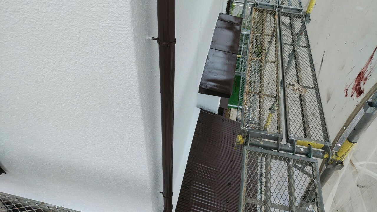 外壁の形状や塗料の種類によっては機械で吹付することもありますが、近隣さんが隣接している事が多い事から、塗料の飛散防止の為にもローラー仕上げが多いですね。