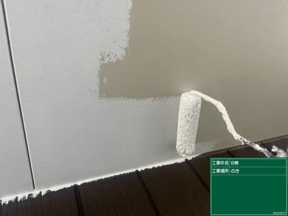 今回上塗りには軒天専用塗料のマルチエースを使用しました。