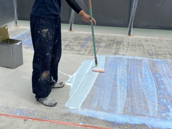 本日も昨日に引き続き名古屋市昭和区で進行中の屋上マットスプレー工事のご紹介になります!